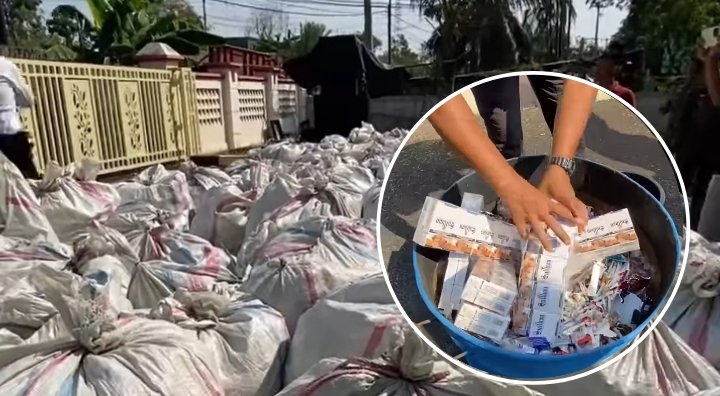 Dalam kegiatan tersebut, dilakukan pula pemusnahan barang bukti hasil penindakan, meliputi rokok ilegal sebanyak 1,6 juta batang yang dimusnahkan melalui pembakaran dan pencacahan menggunakan mesin penggiling.